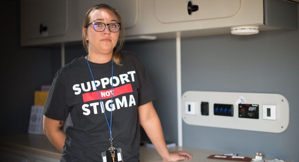 As a Peer Recovery Coach, Haley supports people with substance use disorder, working out of a mobile unit used to operate the county’s first legal syringe services program. The Marion County Public Health Department (MCPHD) unveiled its program in April 2019 with funding support from the Richard M. Fairbanks Foundation.